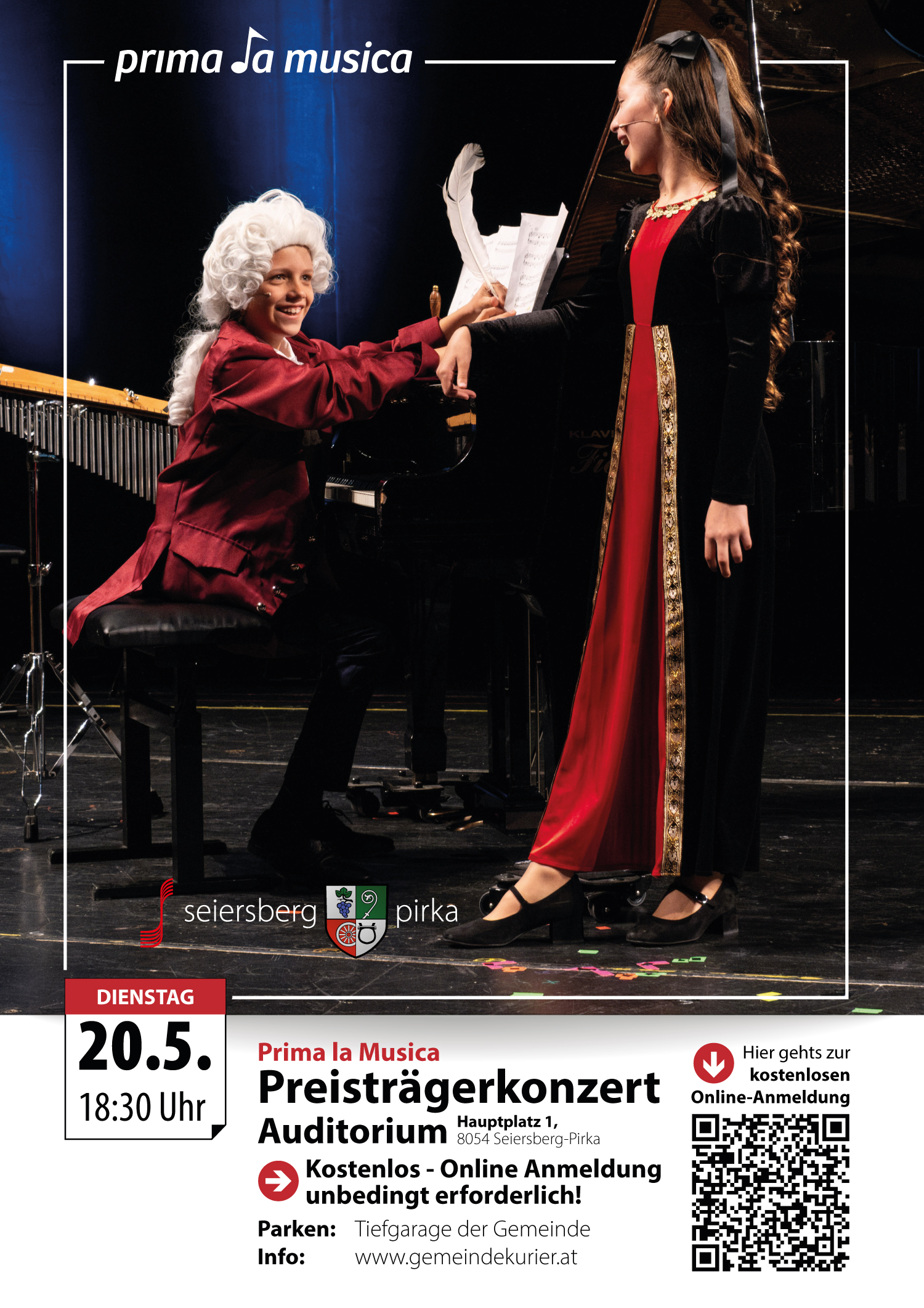 Das Auditorium wird am 20. Mai 2025 zum Treffpunkt für außergewöhnliche musikalische Talente. Beim feierlichen Preisträgerkonzert des Landeswettbewerbs prima la musica präsentieren elf herausragende Solistinnen und Solisten sowie vier beeindruckende Ensembles ihr Können.