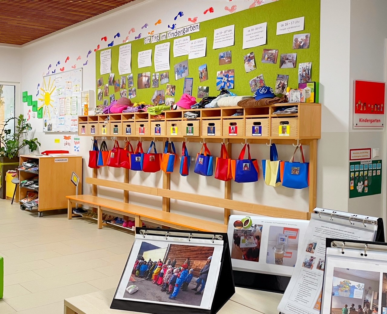 Der Kindergarten Sandgrubenweg bietet in 2 offen geführten Ganztagesgruppen bis zu 44 Kindern eine wertvolle Begleitung, in der Selbstständigkeit, Selbstorganisation und Individualität im Vordergrund steht. Die Aussage von Maria Montessori "Hilf mir es selbst zu tun" wird als gemeinsamer Leitfaden für den pädagogischen Alltag verstanden. In den verschiedenen Funktionsräumen haben die Kinder die Möglichkeit vielfältige Erfahrungen zu sammeln, offen für Neues zu werden und von und mit Anderen zu lernen.